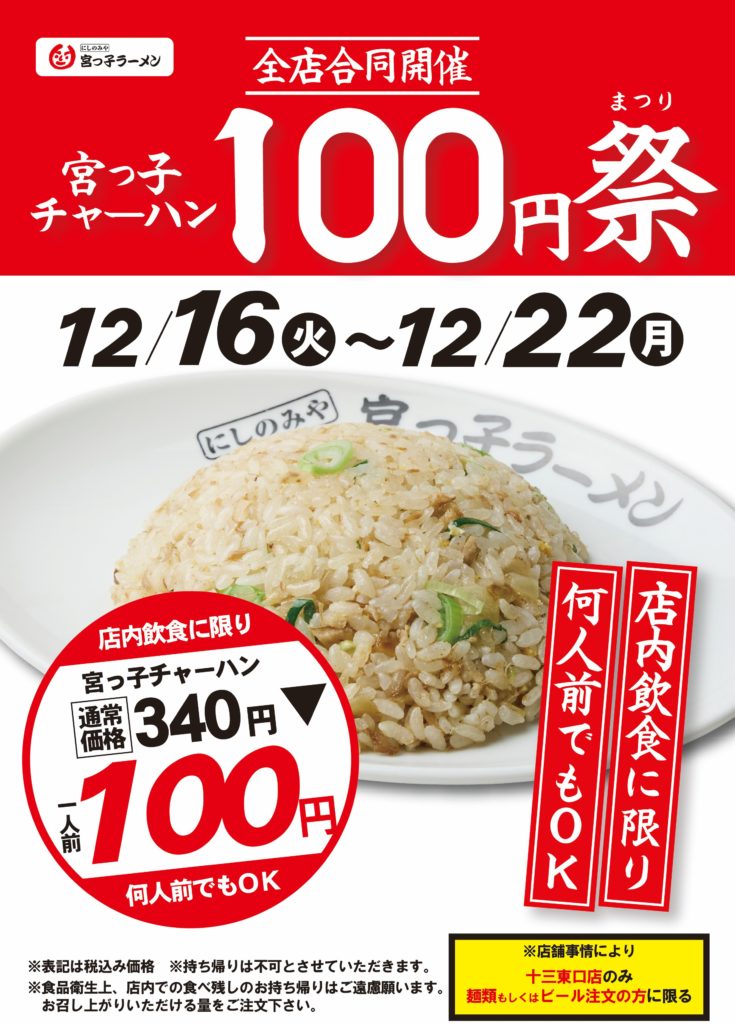 「宮っ子チャーハン100円祭」を開催いたします。
